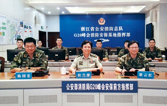 G20峰會消防安保要求如此之高、任務如此之艱巨,公安消防部門是如何應對這場史無前例的挑戰(zhàn),采取了哪些科學有效的措施,是怎樣打贏這場特殊戰(zhàn)役的?帶著這些問題,本刊記者專訪了此次峰會消防安保前方指揮部副總指揮,公安部消防局副局長、總工程師杜蘭萍少將。